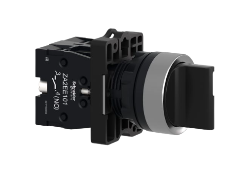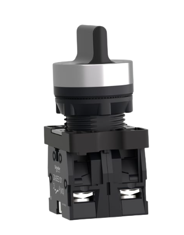 Chave seletora Ø22mm plástica, 3 posições fixas, manopla curta, 2NA